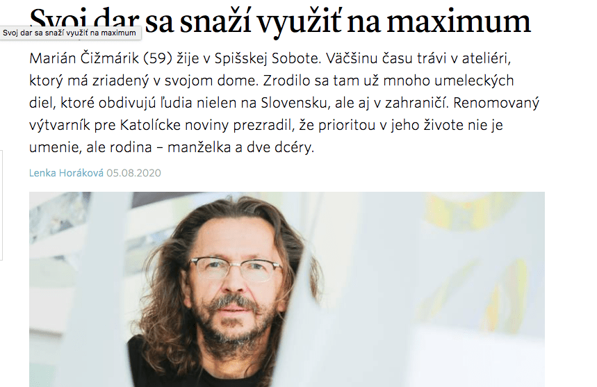 The exhibition featuring Marián Čižmárik’s paintings and the launch of his new book, “Pomalé svetlo vĺn,” took place at Ludovit Fulla Gallery in Ružomberok . The displayed art, combined with the poems and stories by Vladislav Vaľko and essays by Karol Maliňák, came together to create an emotional and thoughtful experience. “The Slow Light Of Waves” connected the authors into a united and coherent expression. The book was published by the Koloman Sokol Society.